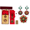 Grand Cross Set, instituted in 1968. Sash Badge, 58x85 mm, gilt Silver, enameled, original suspension wreath and sash. Breast Star, 80 mm, gilt Silver, hallmarked on the pin, enameled, vertical pin on the reverse, in original case of issue by "Chobillon, Paris" and lapel hole rosette. A rare set, in mint condition! I R!