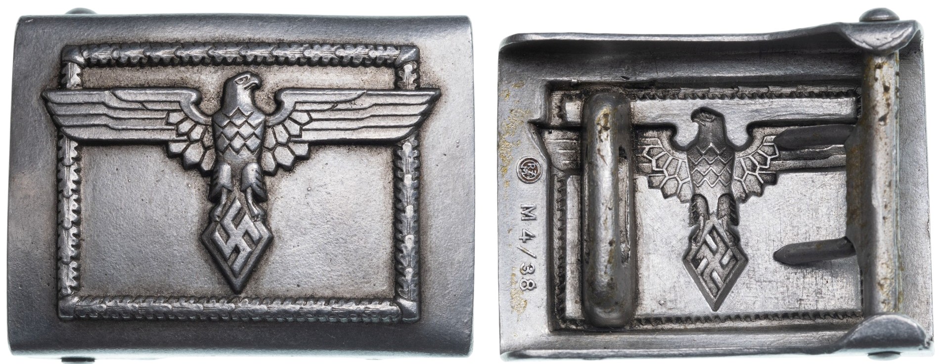 SKU: 743 The Live Auction begins in: Click here to register for the live Auction Starting price 250 EUR Log in to place a bid. Total bids: 0GERMANY - 3RD REICHBelt Buckle, 63x47 mm., Aluminium, maker's mark "RZM "M4/38"", double fixation oin on reverse. Very rare and superb! I RR! Shop ID: 63224Auction LXX - Day 1