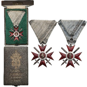 4th Class, 2nd Grade, Tsar Ferdinand I Model. Breast Badge, 42x38 mm, Silver, original suspension ring and ribbon, in case of issue, with gilt monogram and inscription on the lid. A badge of best quality, mint condition! I