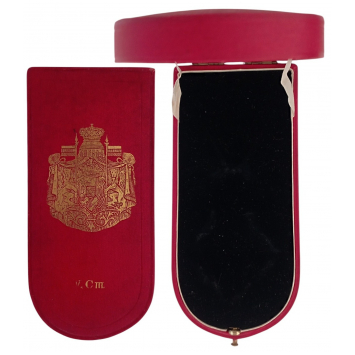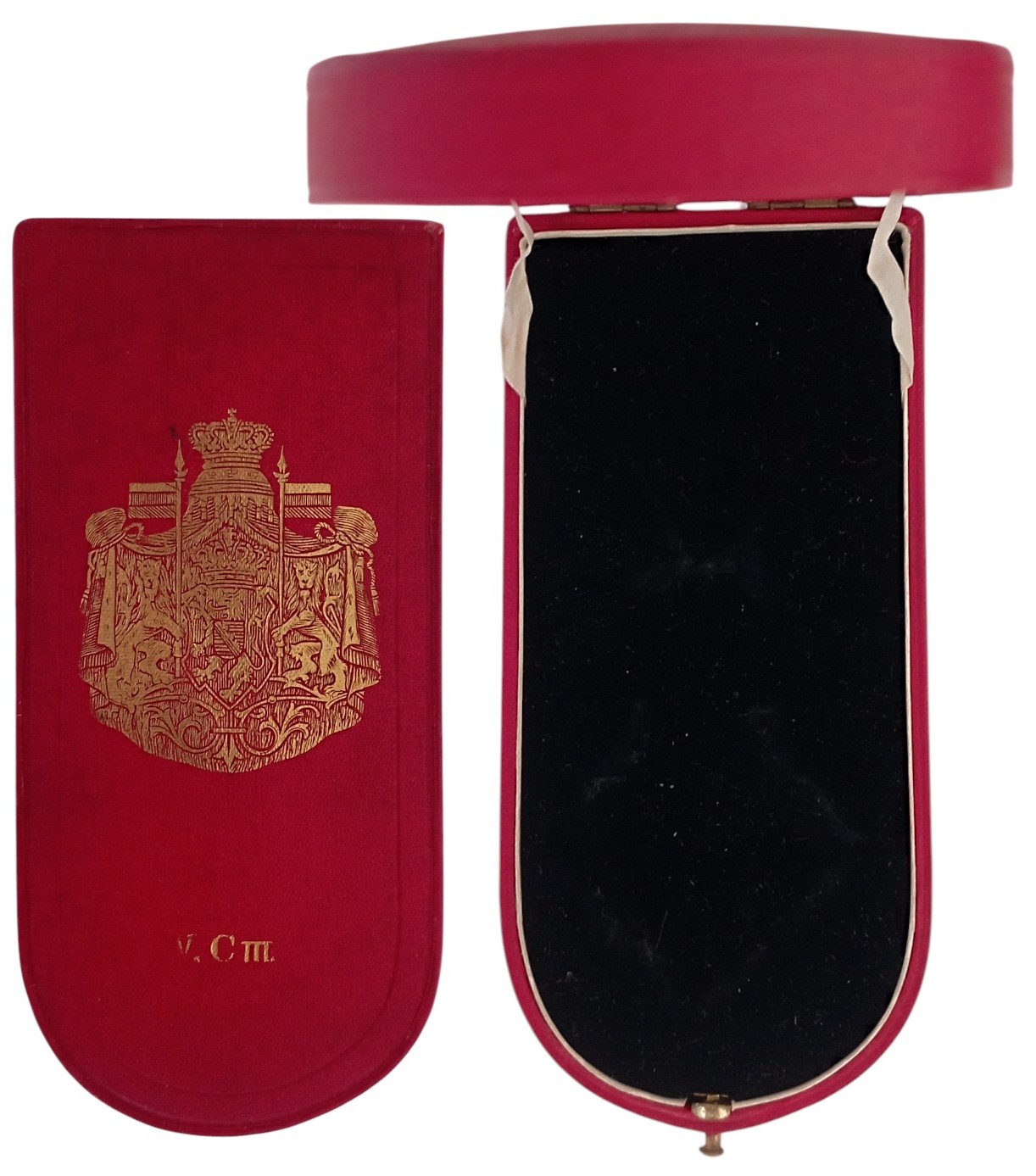 Knight's Cross, 5th Class. Original Case of issue by "Rothe & Neffe - Wien", with gilt weapon and inscription on the lid . A splendid box of best Austrian quality, in mint condition for a very rare cross! RR! I