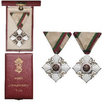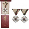 Knight's Cross, 5th Class, 2nd Pattern, 1910. Breast Badge, 54x51 mm, silvered, central medallion enameled, original suspension ring and triangular ribbon, in case of issue, with gilt monogram of Tsar Boris III and inscription on the lid . A beautiful badge, in mint condition! I I