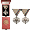 6th Class Cross, Prince Ferdinand I issue Breast Badge, 50x45 mm, silvered, original suspension ring and triangular ribbon, in case of issue by "Johann Schwerdtner - Wien", with gilt weapon and inscription on the lid . A splendid badge of best Austrian quality, in mint condition! I