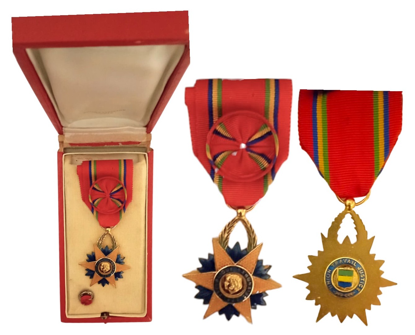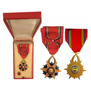Officer's Cross, instituted in 1959. Breast Badge, 51x42 mm, gilt Bronze, maker's mark, both sides enameled, original suspension wreath and ribbon with rosette, in case of issue by "Arthus Bertrand - Paris", together with lapel hope rosette. I