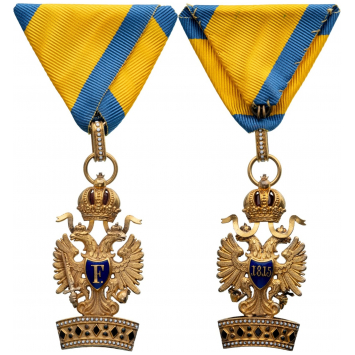 3rd Class Badge, instituted in 1816. Breast Badge, gilt Bronze, enameled, 57x29 mm, original triangular ribbon. Superb badge in mint state! I