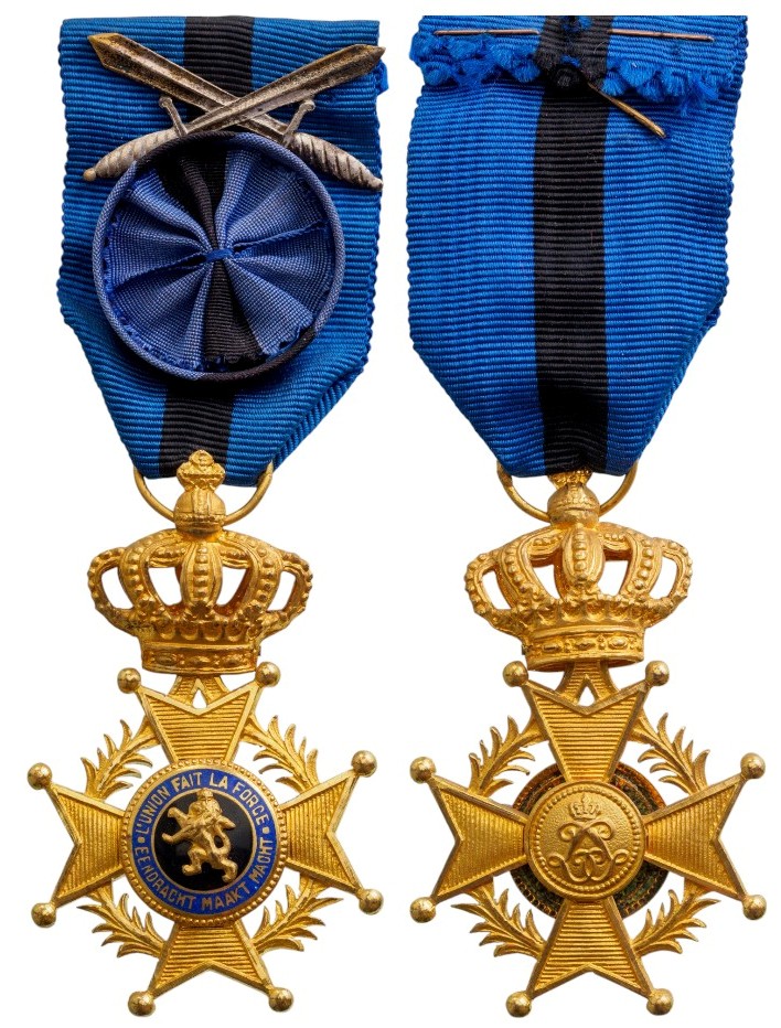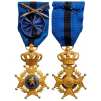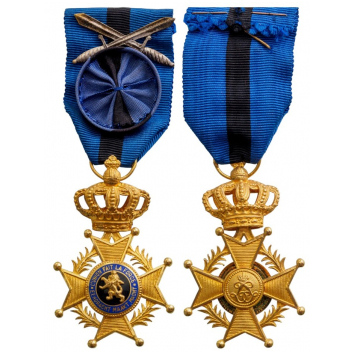 Officer's Cross Military, 4th Class, instituted in 1900. Breast Badge, 64x40 mm, gilt Bronze, one side enameled, original suspension crown, ring and ribbon with crossed silver swords. A beautiful cross in extremely fine condition! I