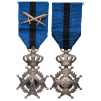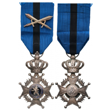 Knight's Cross Military, 5th Class, instituted in 1900. Breast Badge, 66x40 mm, silvered Bronze, one side enameled, original suspension crown, ring and ribbon with crossed silver swords. A beautiful cross in extremely fine condition! I
