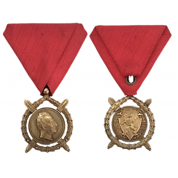 3rd Type, 3rd Class, Prince Ferdinand I emission. Breast Badge, 42x34 mm, Bronze, original suspension ring and triangular ribbon. Extremely fine condition! Rare! I R!