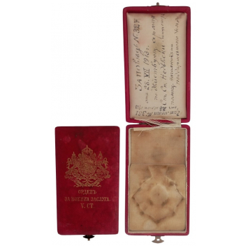 SKU: 194 The Live Auction begins in: Click here to register for the live Auction Starting price 50 EUR Log in to place a bid. Total bids: 0BULGARIAKnight's Cross, 5th Class. Original Case of Issue, with gilt weapon and inscription on the lid. Almost extremely fine condition! I- Shop ID: 69,282Auction LXX - Day 1