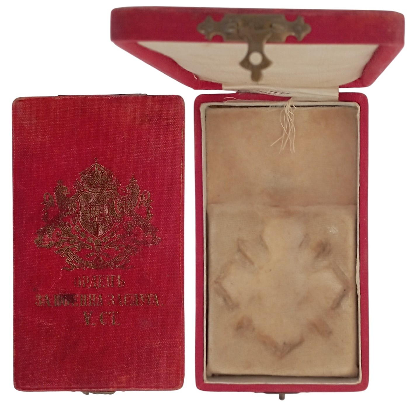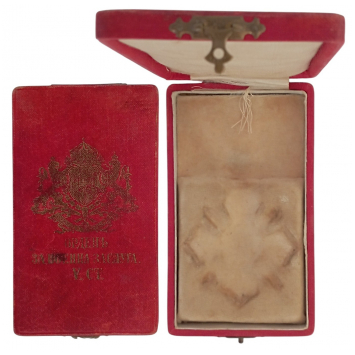 SKU: 195 The Live Auction begins in: Click here to register for the live Auction Starting price 50 EUR Log in to place a bid. Total bids: 0BULGARIAKnight's Cross, 5th Class. Original Case of Issue, with gilt weapon and inscription on the lid. Almost extremely fine condition! I- Shop ID: 69,269Auction LXX - Day 1