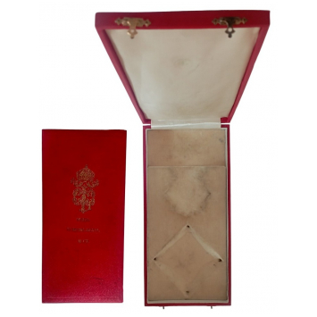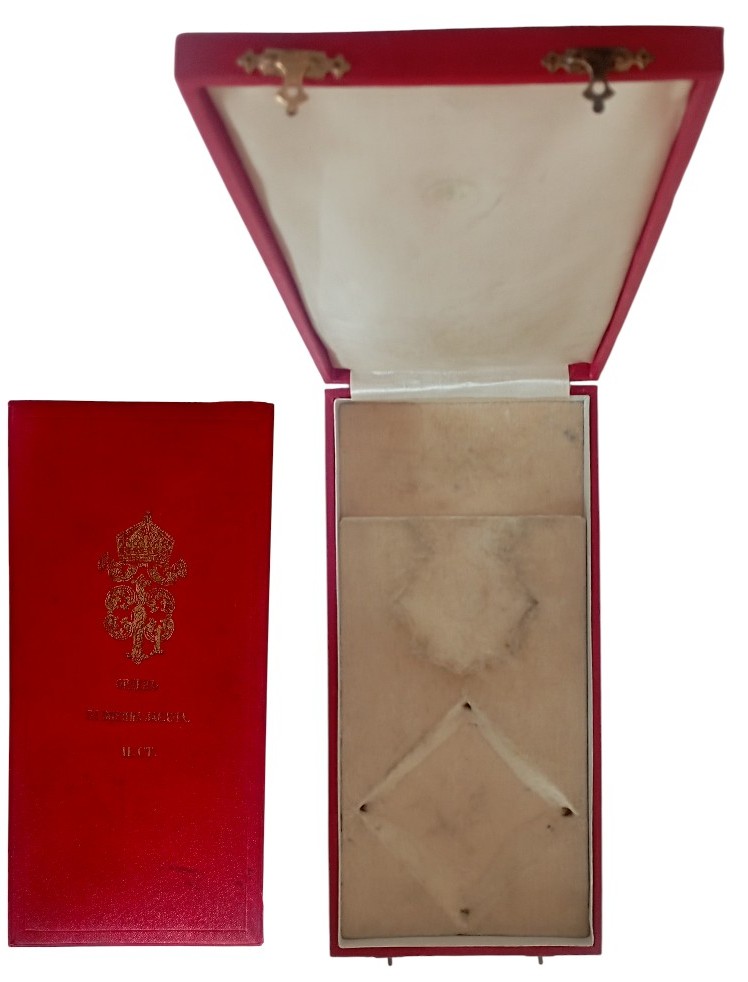 Grand Officer's Set, 2nd Class, Case of Issue, 1st Model. Original Case of Issue, with gilt monogram of Tsar Ferdinand I and inscription on the lid. A box in extremely fine condition! I