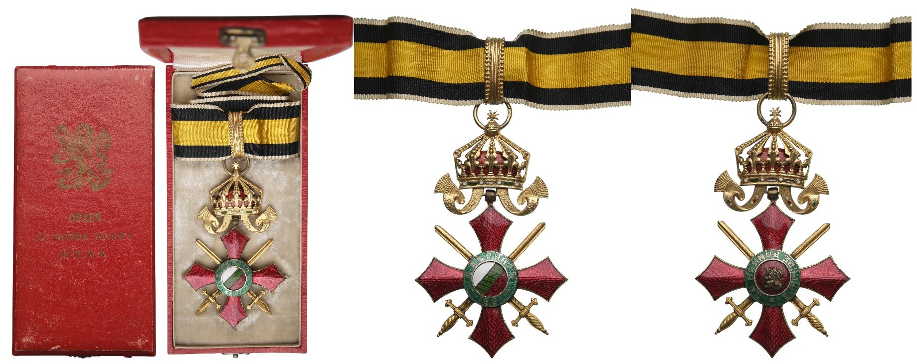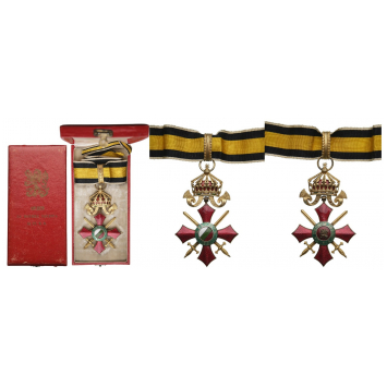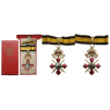 Commander's Cross, 3rd Class, 3rd Model, Republic Model, 1944-1950. Neck Badge, 86x55 mm, gilt Silver, hallmarked "SILBER", central medallion enameled, original suspension ring and ribbon, in case of issue, with Republic gilt weapon on the lid. Mint condition, best quality and very rare! I RR!