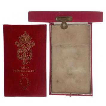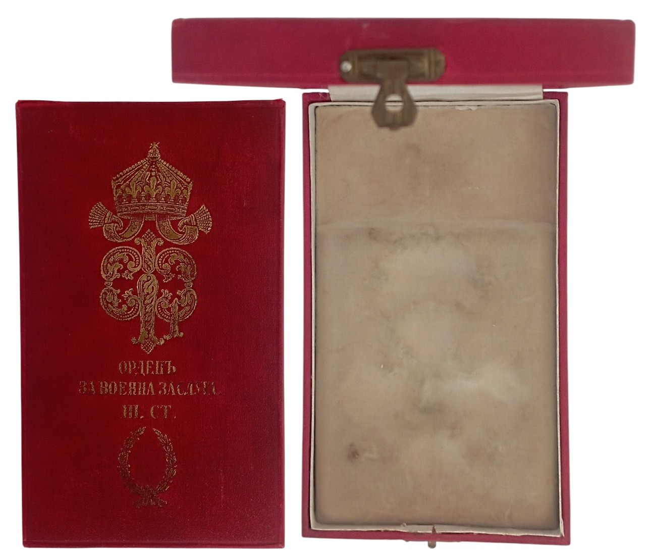 Commander's Cross, 3rd Class with Battlefield Distinction. Original Case of Issue, with gilt Tsar Ferdinand I monogram and inscription on the lid. Extremely fine condition and rare! I R!