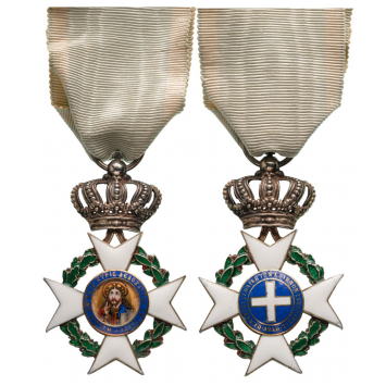SKU: 793 The Live Auction begins in: Click here to register for the live Auction Starting price 80 EUR Log in to place a bid. Total bids: 0GREECEKnight's Cross, 54x34 mm, Silver, enameled, large, bulbous crown, original suspension ring and ribbon. Extremely fine! -I Shop ID: NEXT 211Auction LXX - Day 1
