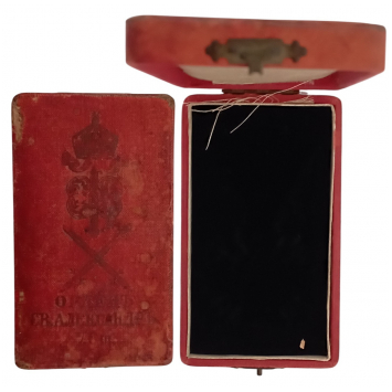 SKU: 137 The Live Auction begins in: Click here to register for the live Auction Starting price 50 EUR Log in to place a bid. Total bids: 0BULGARIAKnight's Cross with Swords, 5th Class. Original Case of Issue, with gilt monogram and inscription on the lid. Very fine condition! II Shop ID: 69,212Auction LXX - Day 1