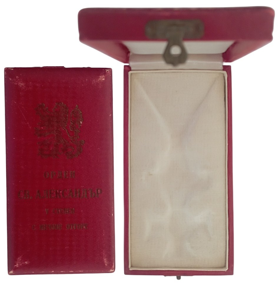 Knight's Cross, 5th Class with Swords for Military in Time of Peace, Republic Model, 1944-1950. Original Case of Issue, with gilt weapon of the Republic and inscription on the lid. A rare box, in almost extremely fine condition! I R!