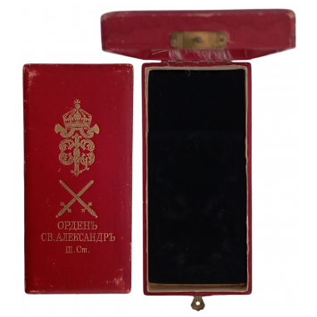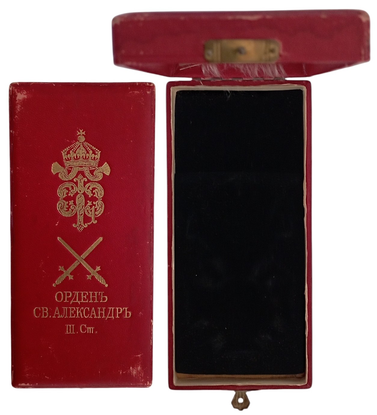 Commander's Cross, 3rd Class with Swords. Original Case of Issue, with gilt monogram of Tsar Ferdinand I and inscription on the lid. A box in extremely fine condition! I