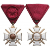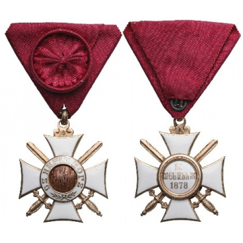 Officer's Cross with Swords, 3rd Model, 2nd Type, 1918 - 1943. Breast Badge, 45x38 mm, gilt Silver, hallmarked, original suspension ring and triangular ribbon. A badge of best quality, and mint condition! I