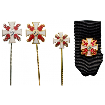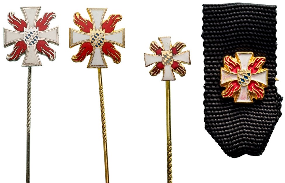 SKU: 678 The Live Auction begins in: Click here to register for the live Auction Starting price 15 EUR Log in to place a bid. Total bids: 0GERMANY - BAYERNBreast Pins, 14 mm. gilt and silvered, 9 mm. gilt (2x), Bronze, one side enameled, original pin on reverse, extremely fine condition and very elegant! I (4) Shop ID: OMSA77Auction LXX - Day 1