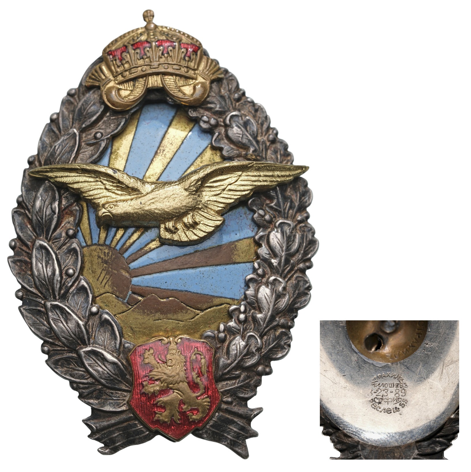 SKU: 350 Auction has finished. Total bids: 1BULGARIABreast Badge, 57x38 mm., Silver and Bronze, enameled, original screw and plate, maker's mark. Superb! I Shop ID: ST100