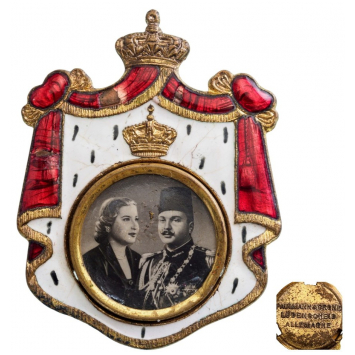 Breast Badge, 41x31 mm., gilt Brass, obverse enameled, maker's mark "PAULMANN & CRONE, LUDENSCHEID - ALLEMAGNE", original pin on reverse. A very rare and attractive badge, of best German jeweler's quality! I RR!