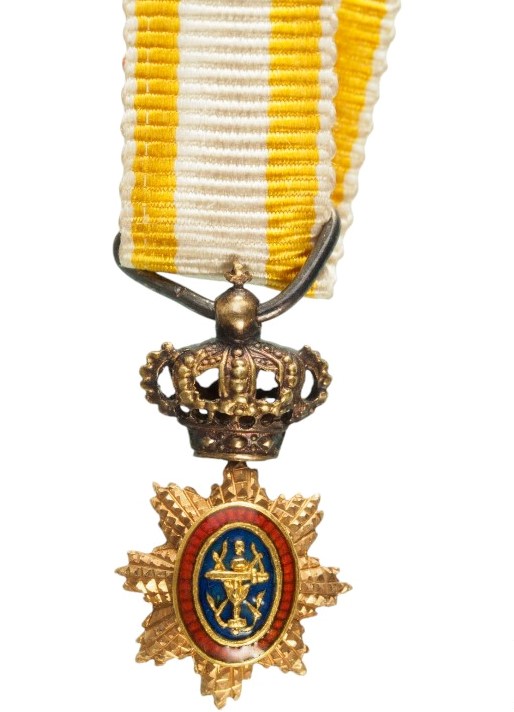 SKU: 401 The Live Auction begins in: Click here to register for the live Auction Starting price 150 EUR Log in to place a bid. Total bids: 0CAMBODIAOfficer's Cross Miniature, 4th Class, instituted in 1864. Breast Badge, 15x9 mm., GOLD, original suspension ring and ribbon. A beautiful miniature, in extremely fine condition! I Shop ID: OMSA4Auction LXX - Day 1