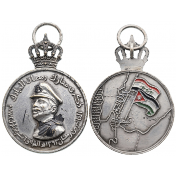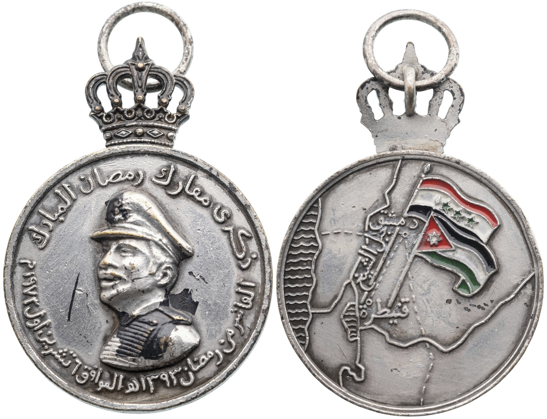 SKU: 983 The Live Auction begins in: Click here to register for the live Auction Starting price 25 EUR Log in to place a bid. Total bids: 0JORDANBreast Badge, 56x40 mm, silvered, partially enameled, original suspension crown and ring. Very fineI II Shop ID: 69,424Auction LXX - Day 2