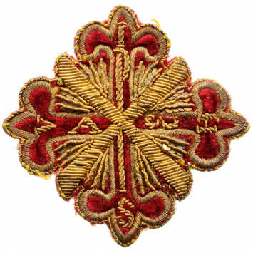 Cloth Breast Star, instituted during the 16th Century. Breast Star in velvet, 59 mm, GOLD and silver bullion, reverse backed with white velum. Some signs of wear. Rare and attractive early 19th Century star! I R!