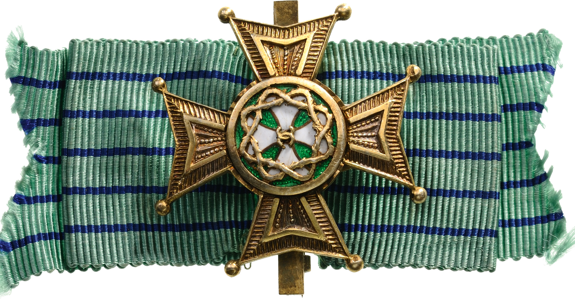 3rd Class for Ladies by "Da Costa, Lisboa". Breast Badge,, 38 mm gilt Metal, medallion enameled, with pin on reverse and original ribbon. Very rare order of the period of exile of King Carol II, in superb condition. I RR!