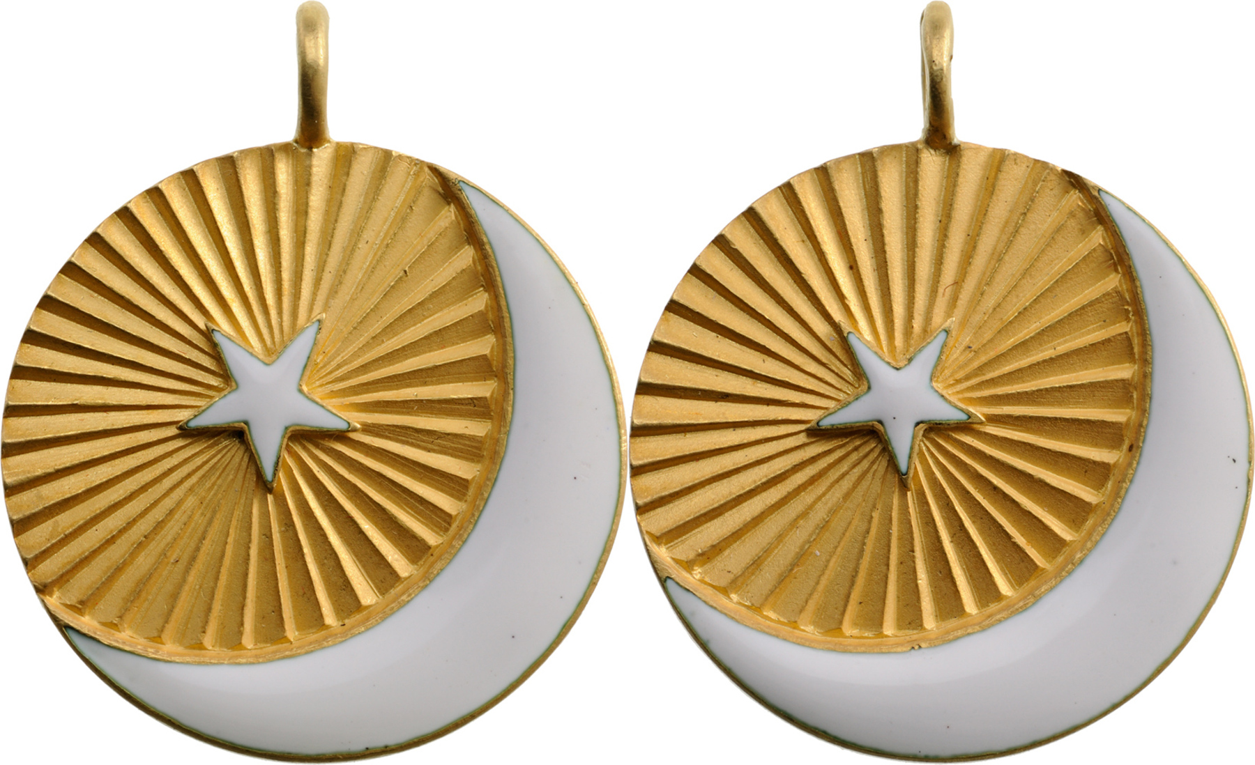 SKU: 1622 The Live Auction begins in: Click here to register for the live Auction Starting price 2.000 EUR Log in to place a bid. Total bids: 0TURKEYGold, 20 mm, both sides with white enameled crescent and star, this, on chiseled beams, round suspension loop, struck with French "eagle`s head" gold mark. Very rare! I RR! Shop ID: 168756Auction LXX - Day 2