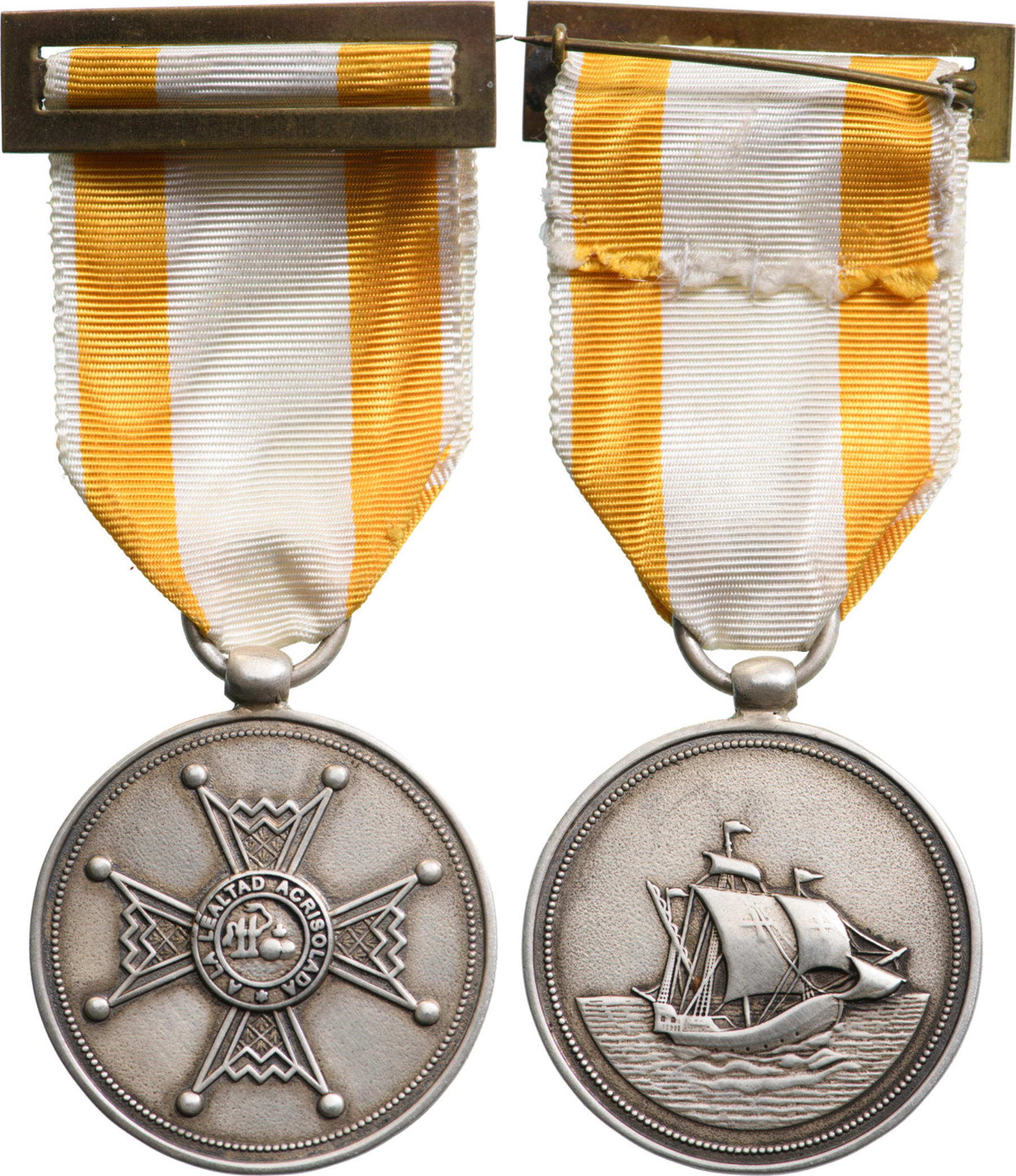 SKU: 1498 The Live Auction begins in: Click here to register for the live Auction Starting price 750 EUR Log in to place a bid. Total bids: 0SPAINMedal of the Order, Republic Model. Breast Badge, 39x34 mm, Silver, original suspension ring and ribbon with gilt bar. Extremely rare and superb medal! I RR! Shop ID: 56.11.55Auction LXX - Day 2