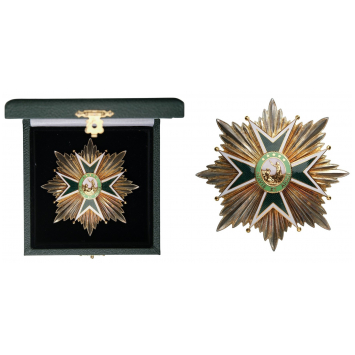 Grand Officer's Star. Breast Star, 86 mm, Silver, enameled, vertical pin on the reverse, in original case of issue by "Toye, Kenning & Spencer Limited - London". A beautiful star, in mint condition! I