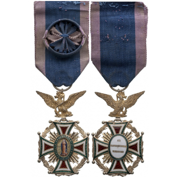Officer's Cross Military, 4th Class, instituted in 1821. Breast Badge, 60x36 mm., gilt Silver, both sides enameled (minor damages), original suspension eagle, ring and ribbon with rosette. A superb order, in very fine condition! II