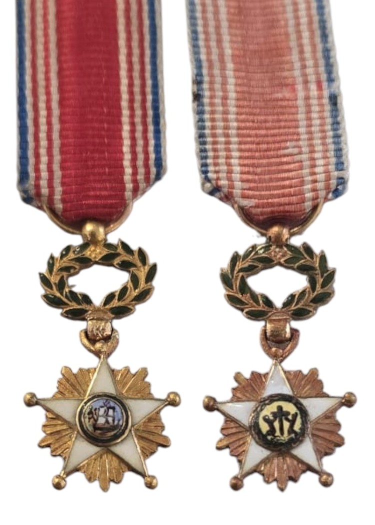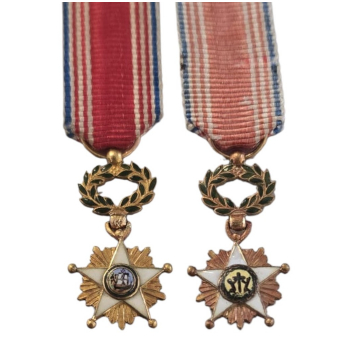 SKU: 997 The Live Auction begins in: Click here to register for the live Auction Starting price 150 EUR Log in to place a bid. Total bids: 0LIBERIAMiniature, instituted in 1879. Breast Badge, 20x11 mm, GOLD, enameled, central medalion gold, original suspension wreath, ring and ribbon. Rare and superb! I R! Shop ID: 69,375Auction LXX - Day 2