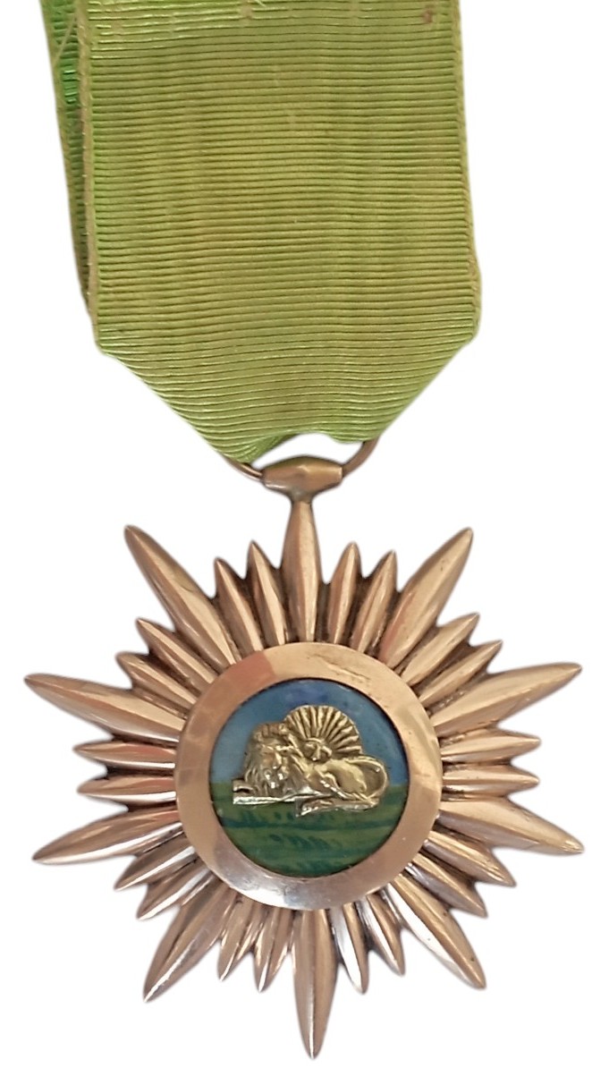 SKU: 895 The Live Auction begins in: Click here to register for the live Auction Starting price 200 EUR Log in to place a bid. Total bids: 2IRAN - PERSIA2nd Class. Breast Badge, 5553 mm., gilt Silver, center enameled, original suspension ring and ribbon. Extremely fine! Scarce! I R! Shop ID: 69.895Auction LXX - Day 2