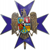 2nd Class. Breast Star, 54 mm in silvered Bronze, one side blue enameled cross with enameled weapon in the centre. Large pin on the back, dark patina. The order was awarded for bravery and devotion in the ranks of the Civil Guard. Very rare! I- RR!