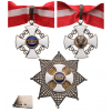 Grand Officer's Set, instituted in 1861. Neck Badge, 60x55 mm, Silver, both sides enameled, original suspension ring, loop and ribbon. Breast Star, 75 mm., Gold and Silver, superimposed part enameled and gilt, thin pin on reverse. Superb set, in mint condition! I