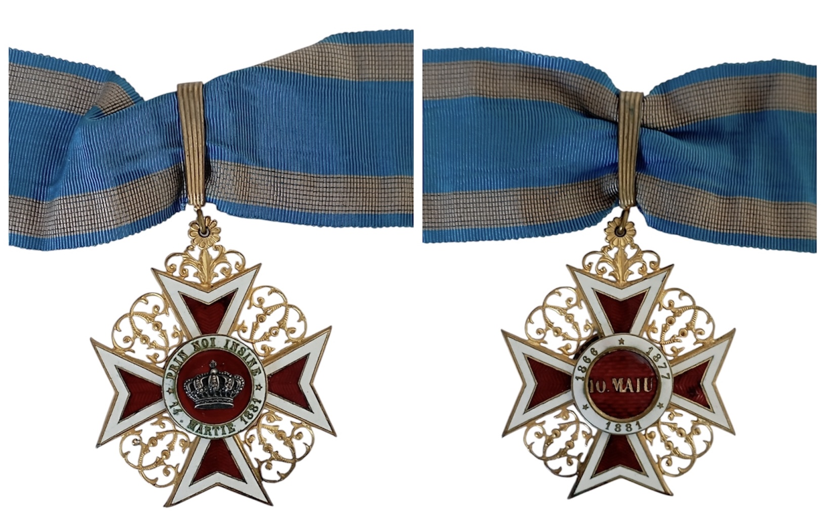 SKU: 1189 The Live Auction begins in: Click here to register for the live Auction Starting price 250 EUR Log in to place a bid. Total bids: 0ROMANIACommander's Cross 1st Type, Civil. Neck Badge, 69x56 mm., gilt Bronze, both sides enameled, original suspension loop and ribbon. A superb French luxury manufacture, in extremely fine condition! I Shop ID: 95Auction LXX - Day 2