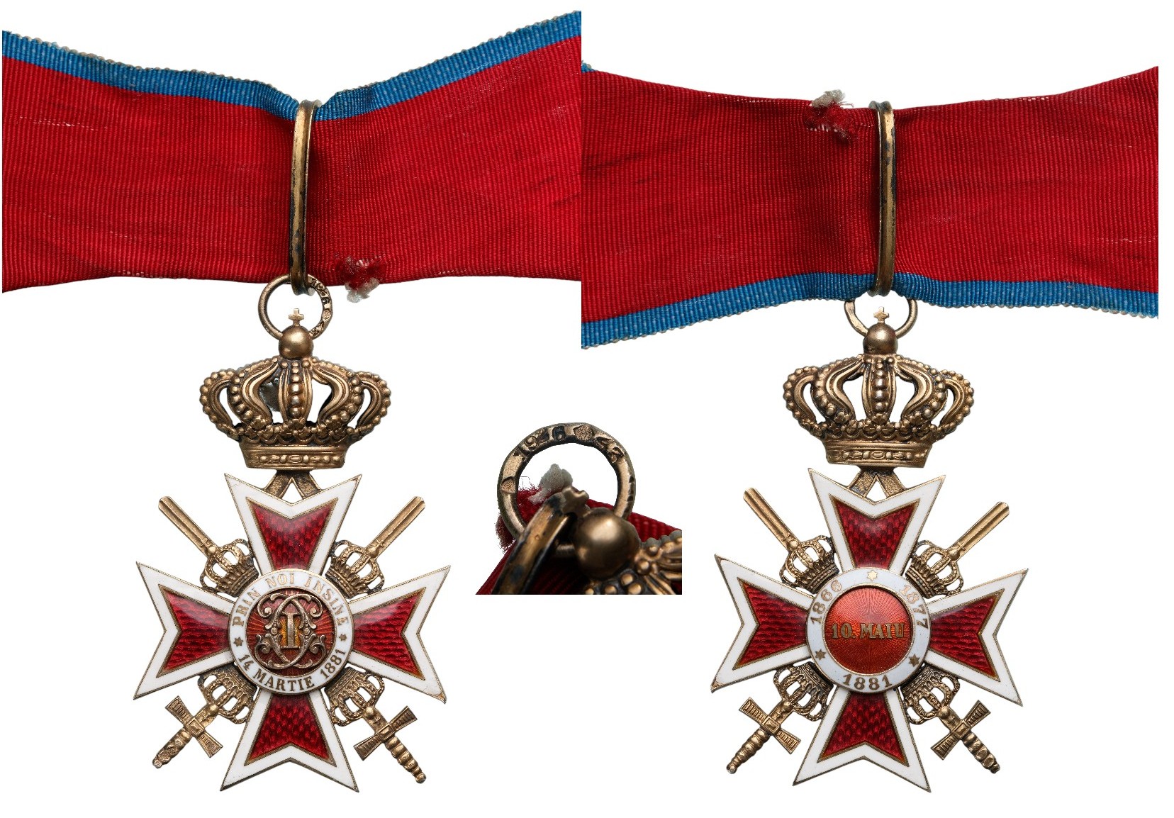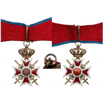 Commander's Cross 2nd Type, Military. Neck Badge, 70x45 mm, Silver, hallmarked "SILBER - CFZ - 1926 - 43, crown", maker's mark "MN - Monetaria Nationala" both sides enameled (minor chips at points), original suspension ring, loop and complete ribbon. A beautiful and scarce cross, in very fine condition! II