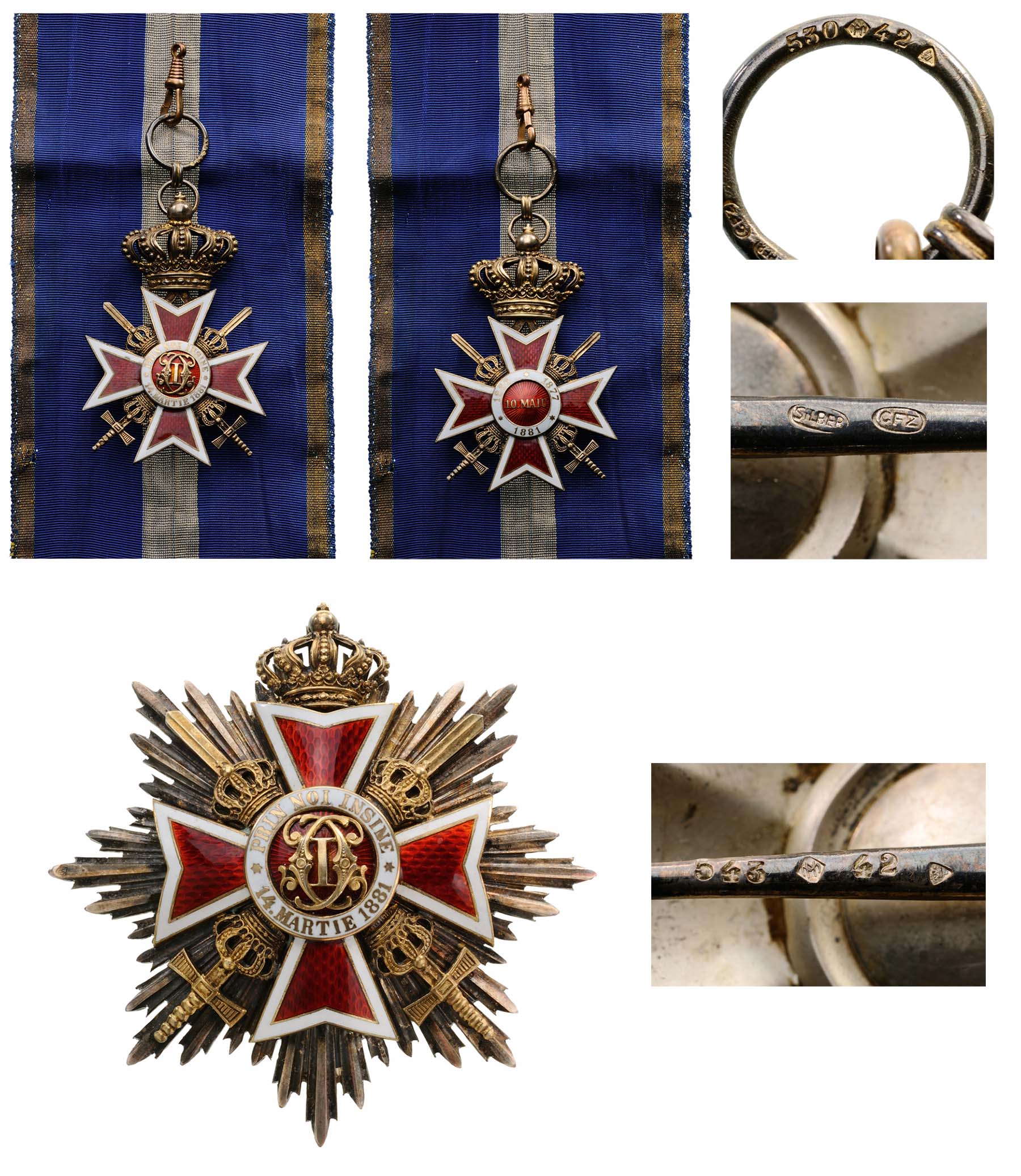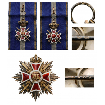 Grand Cross Set, 2nd Type (1938), Military. Sash Badge with swords, gilt Silver, hallmarked "SILBER", maker`s mark "CFZ-530-MN-42-crown", both sides enameled, hallmarked "SILBER", maker`s mark "CFZ-543-MN-42-crown",medium size pin on reverse. Very rare set of exceptional quality! I RR!