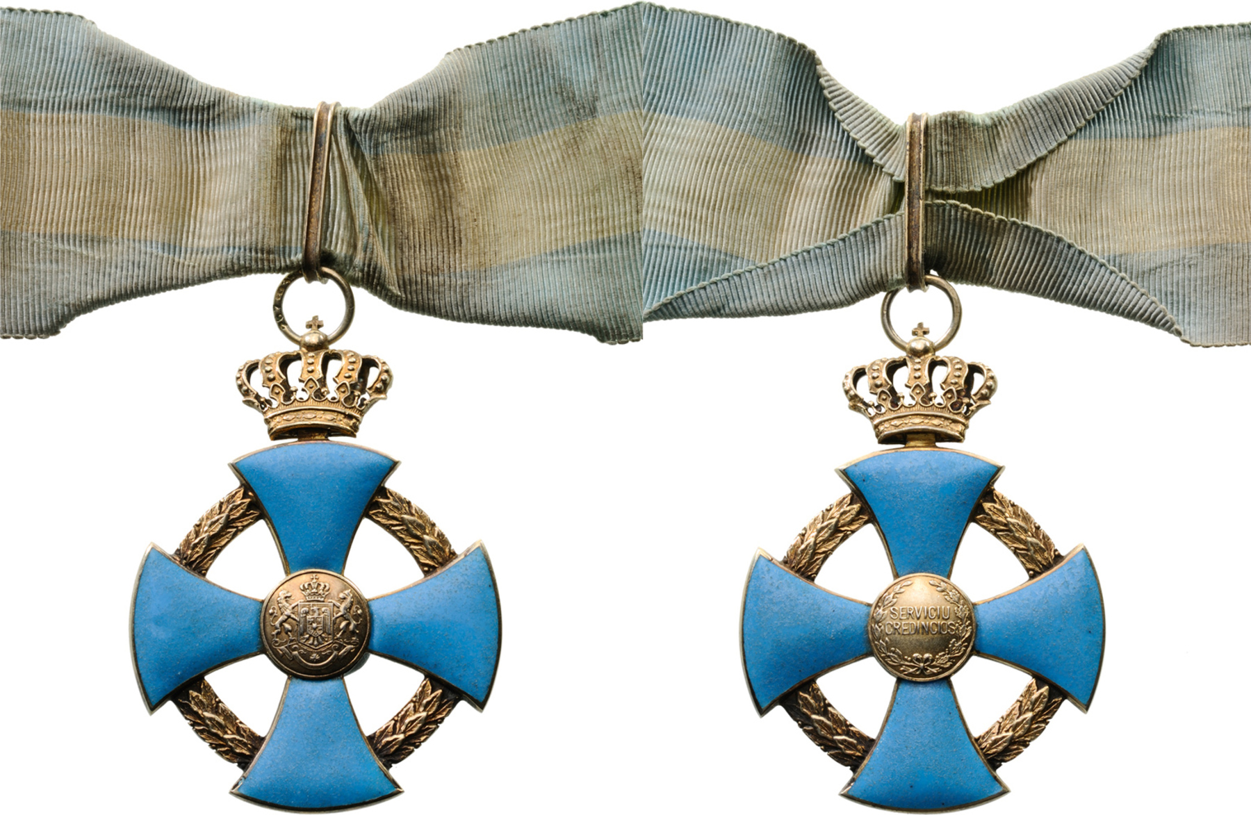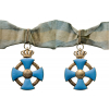 Commander`s Cross, for Civil. Neck Badge, 68x50 mm., gilt Silver, concave cross, hallmarked "267-35", maker`s mark "HW (Heinrich Weiss)", concave light blue enamel on both sides and laurel wreaths between the limbs, with large original ribbon. Very rare, high quality order! I RR!