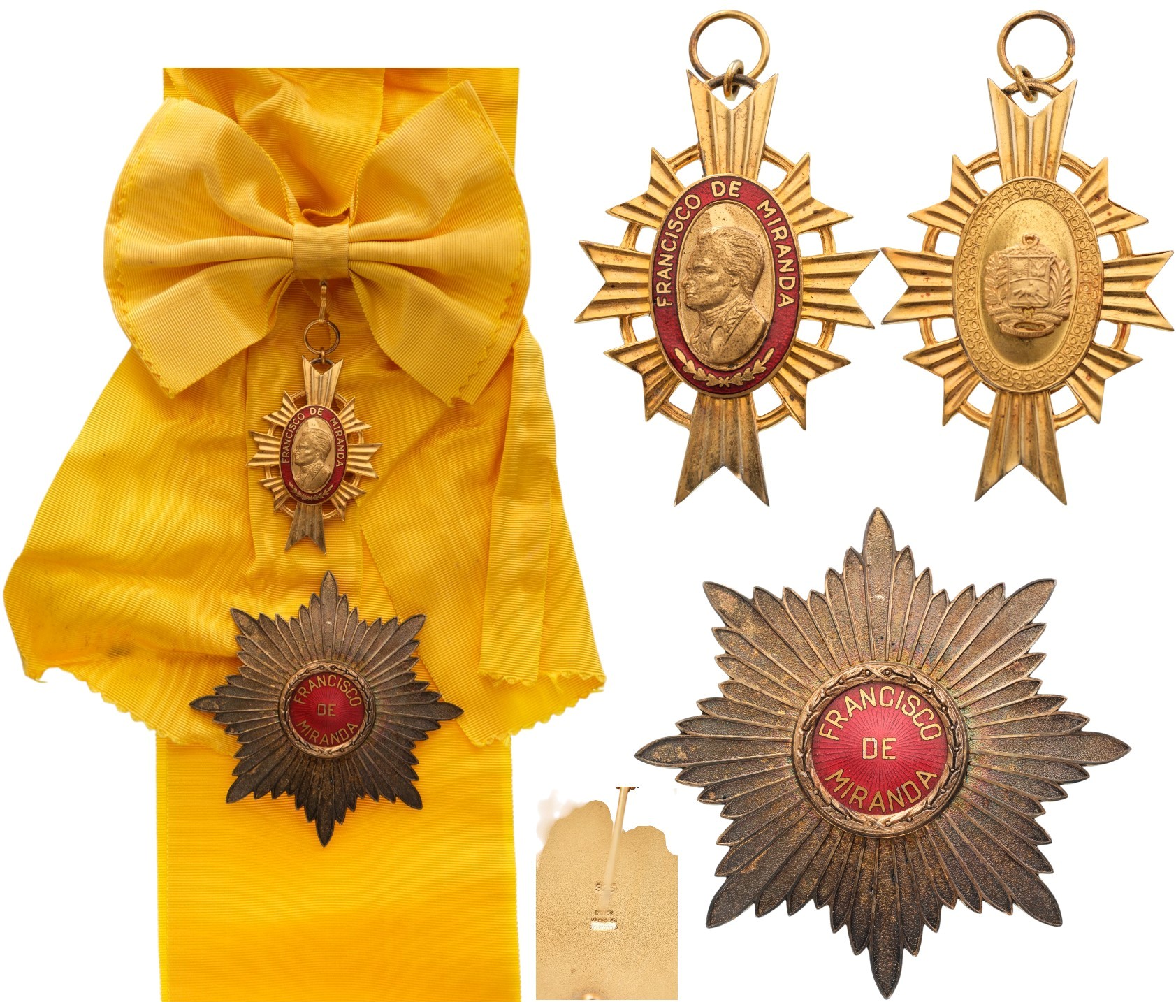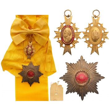 Grand Cross Set, instituted in 1943. Sash Badge, 58x39 mm, gilt Silver, enameled, original ring suspension and long sash. Breast Star, 80 mm, Silver, hallmarked "925", by “”. central medalion enameled, pin on reverse.