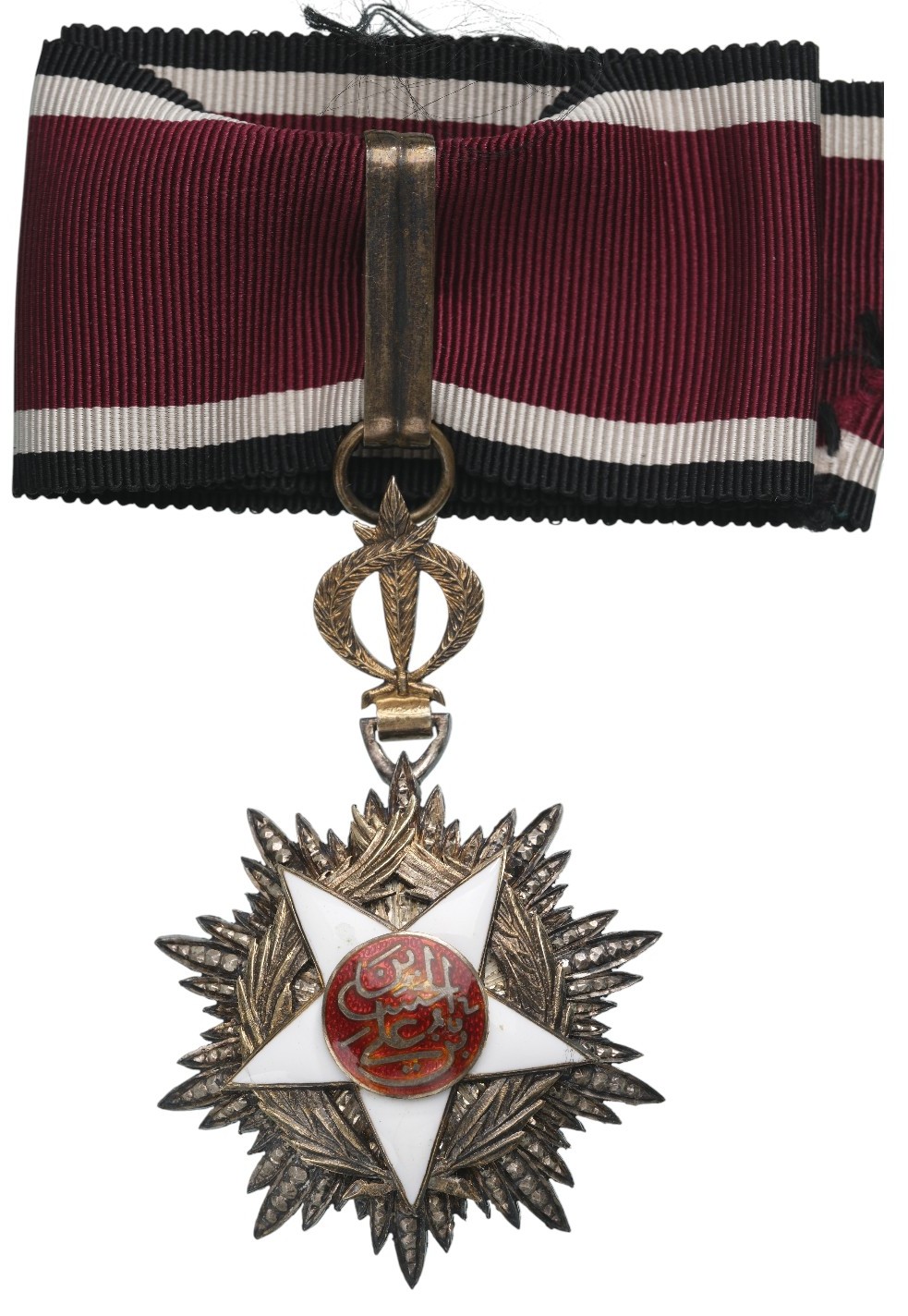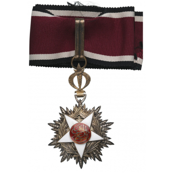 Commander's Cross, 3rd Class, instituted in 1921. Neck Badge, 64x43 mm, partially gilt Silver, enameled, superimposed part gilt enameled, with original suspension device, ring and ribbon. Very attractive badge, in superb condition. I