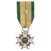 Officer's Cross Military (OLM), 4th Class. Breast Badge, 39x36 mm, gilt Silver, white enameled cross, obverse centre medallion blue enameled, round suspension ring and original ribbon with Silver rosette. A rare and beautifully made piece, in mint condition! I R!