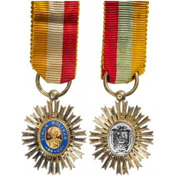 SKU: 1707 The Live Auction begins in: Click here to register for the live Auction Starting price 10 EUR Log in to place a bid. Total bids: 0VENEZUELABreast Badge Miniature, 25x19 mm, gilt Silver with smooth rays, central reverse medallions missing and replaced, original suspension ring and ribbon. IV Shop ID: DO 101Auction LXX - Day 2