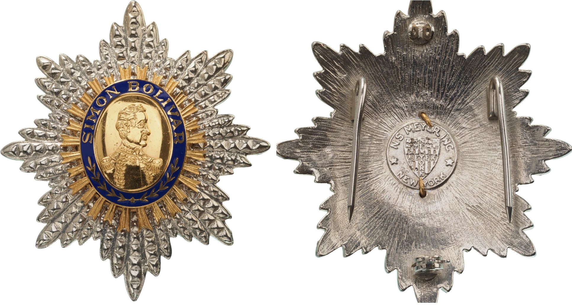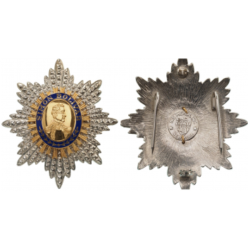 SKU: 1704 The Live Auction begins in: Click here to register for the live Auction Starting price 150 EUR Log in to place a bid. Total bids: 0VENEZUELAGrand Cross Star, instituted in 1880. Breast Star, 82x72 mm, gilt Metal, by "N.S Meyer, New York". central medalion enameled, reverse pin missing and two side hooks. II Shop ID: SPU 128.1Auction LXX - Day 2