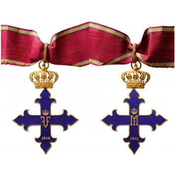 Commander`s Cross, 2nd Class, 4th Model in gilt Copper, blue enameled, obverse with the cipher of King Michael I and the 2nd model institution year 1941, reverse the order`s original institution date, 1916 and King Ferdinand`s cipher, with original suspension loop and original ribbon. Rare class, in perfect condition! Dim.: 84,0x61,0 mm. I R!