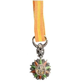 Officer's Cross Miniature with DIAMOND, 4th Class. Breast Badge, 19x12 mm, Silver with brilliant cut rays, one superimposed Diamond, central medallion silver, enameled, original ornamented suspension device and ribbon. Rare and superb! I R!