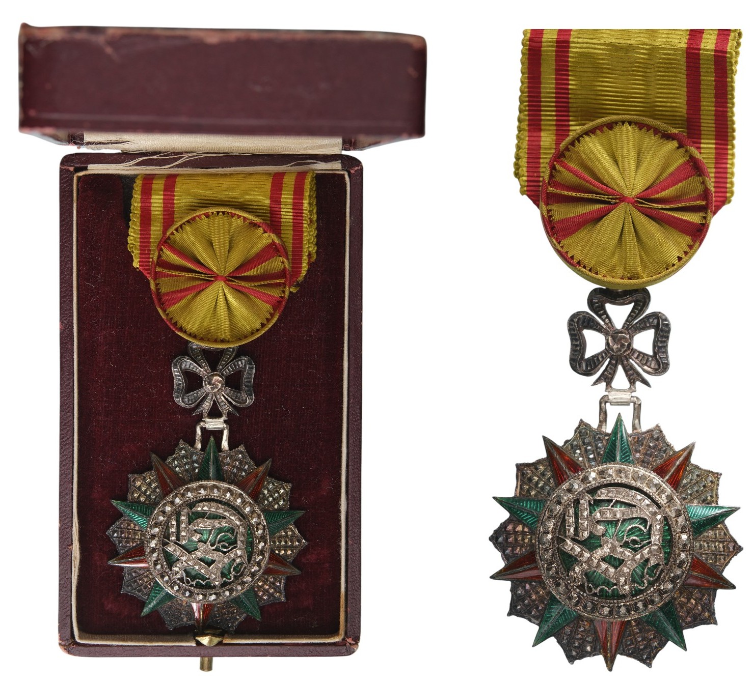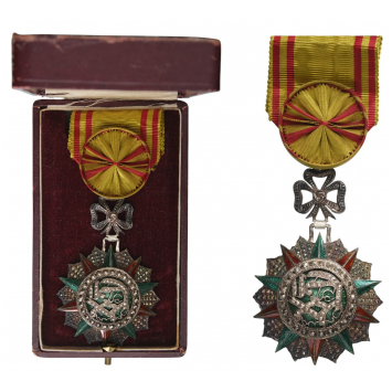 Officer’s Cross, 4th Class, Mohamed el Naceur (1905–1922). Breast Badge, 71x45 mm, Silver, one side enameled, original suspension ring and ribbon, in case of issue. A superb high quality, in mint condition! I