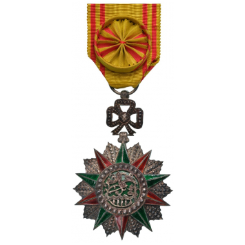 SKU: 1594 The Live Auction begins in: Click here to register for the live Auction Starting price 100 EUR Log in to place a bid. Total bids: 0TUNISIAOfficer's Cross, 4th Class, Muhammad al Habib (1922-1929. Breast Badge, 76x51 mm, Silver, one side enameled, original suspension ring and ribbon with rosette. A superb high jeweller's quality! I Shop ID: 69.66Auction LXX - Day 2