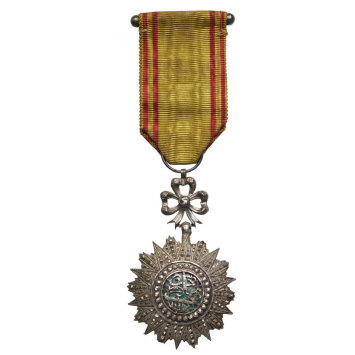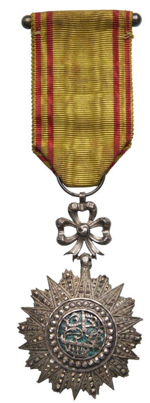 Knight’s Cross, 5th Class, Muhammad al Habib (1922-1929. Breast Badge, 74x47 mm, Silver, one side enameled, original suspension ring and ribbon with suspension bar. A superb high jeweller's quality! I